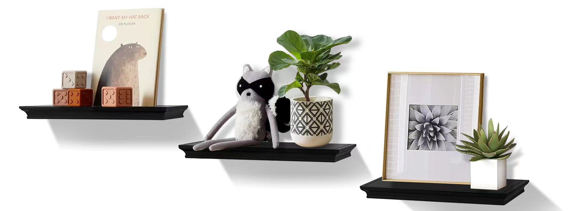 Black Floating Wall Shelf for Home Decoration-Display
